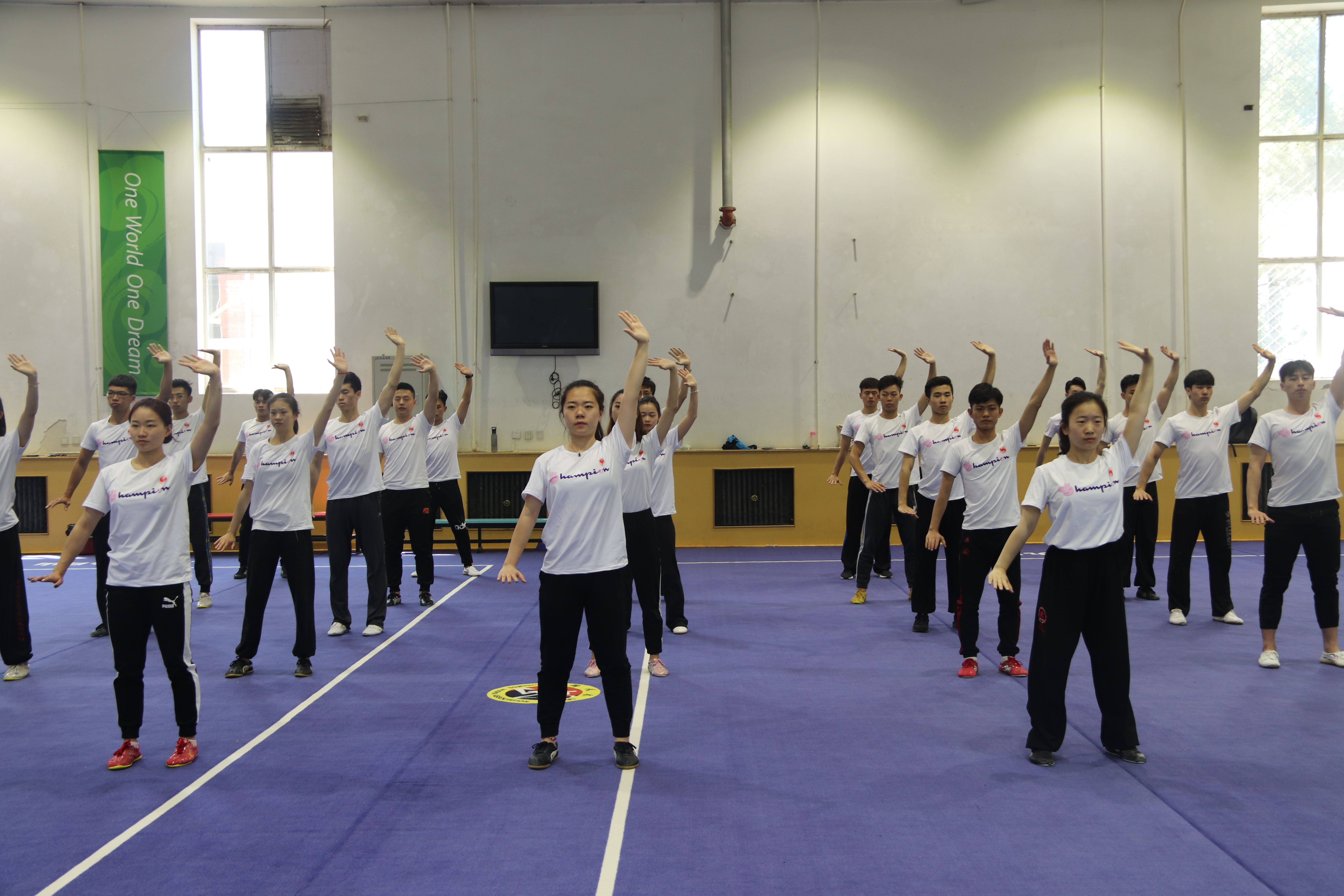 武术与民族传统体育学院院长马学智,团总支书记朱国栋,2014级辅导员崔华出席比赛开幕式,养生教研室杨慧、王晓军、杨玉冰、庄永昌、刘晓蕾、彭翔吉老师担任裁判员。参加本次比赛队伍分别来自武术与民族传统体育学院2016级和2017级的12个班级。本次比赛分为专业组和非专业组,每次两个队伍上场比赛。最终2017级4班凭借整齐的节奏,协调的动作以及同学们健康向上的精神面貌获得专业组第一名。2017级5班获得非专业组第一名。
