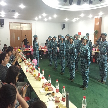 联欢会在行云流水的太极拳表演中拉开序幕,“你比我猜”等互动游戏拉近了师生的距离,现场气氛轻松、活泼,充满欢声笑语,张院长的一首《老情歌》,让人如痴如醉,使得晚会现场群情激昂,掌声雷动,气氛爆棚。最后,2016级研究生英姿煞爽的军训技能展示和气势磅礴的《强军战歌》大合唱让在场师生热血沸腾,情不自禁集体歌唱,使得整场晚会气氛达到了高潮,至此,本次活动在欢歌笑语中圆满落下了帷幕。