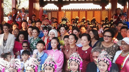 2017年5月15日,习近平夫人彭丽媛邀请出席“一带一路”国际合作高峰论坛的各国领导人配偶参观世界文化遗产——故宫博物院,领略中华文化,了解中国同“一带一路”沿线国家源远流长的人文交流。主创团队为“一带一路”国际合作高峰论坛领导人配偶做的故宫御花园文化展演活动《丝韵春风》。