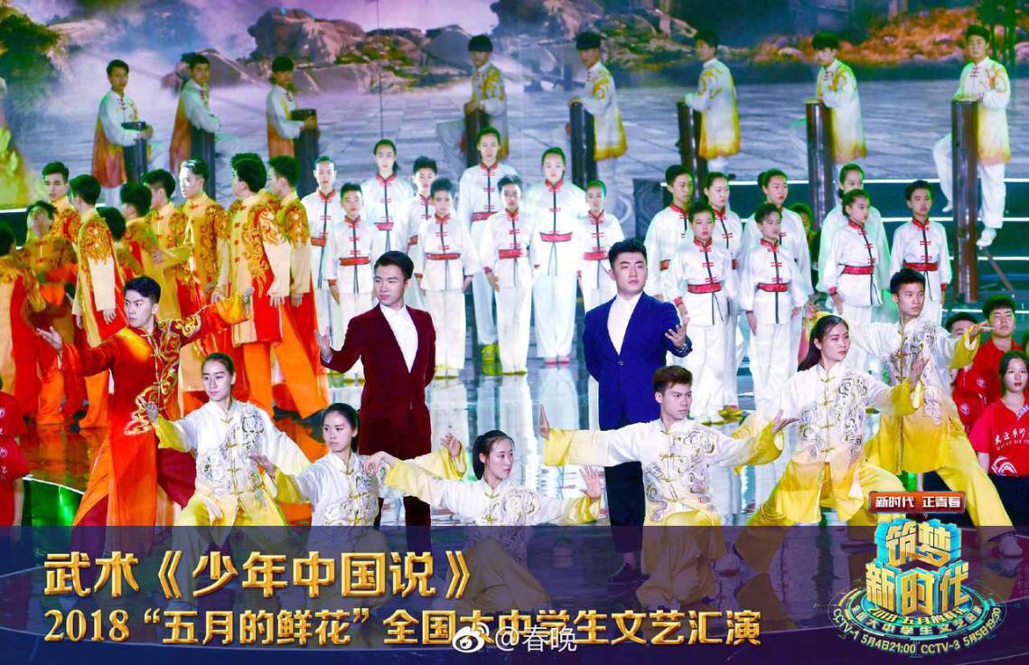 我院学生自2014年起每年参加该节目的录制和演出,今年我院应中央电视台邀请选拔了以武术表演班为主的22名本科生参加节目录制,由段永斌老师带队。自三月底起利用课余时间进行节目排练,老师和同学们投入了高度的热情和大量的时间和精力,与知名艺人和兄弟院校一同献上了精彩的节目,充分展现了当代大学生的积极向上的精神风貌,展示了武术与民族传统体育专业大学生的专业技能,节目录制现场以高技术、高标准、高难度的原则圆满完成了节目录制,向全国人民留下了深刻的北体印象!
