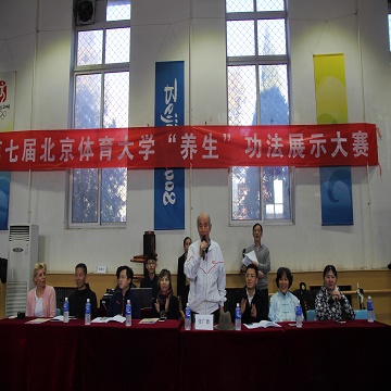 为了推进体育养生专业的健康可持续发展,提高我校体育养生专业学生的专业技术水平,培养非专业学生及教师对体育养生的兴趣,达到以赛促练的目的,并培养学生的竞赛组织能力、提高裁判水平,2016年12月14日在北武术馆,举办了由英国上市公司365训练竞赛管理处主办、武术学院体育养生教研室承办的第七届英国上市公司365体育养生功法展示大赛。出席本次大赛的嘉宾有导引养生功创始人张广德教授、研究生院张瑞华老师、体育养生教研室主任胡晓飞老师、书记杨慧老师、武术学院研究生辅导员滕树云老师、四川洪雅县委杨书记、比利时导引养生协会苔丝女士以及来及美国的导引养生爱好者们。胡老师为大赛致开幕词,预祝运动员们取得好成绩、比赛圆满成功。