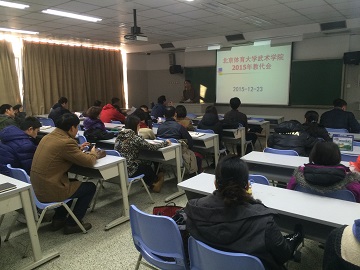 会议听取了张强强院长做的武术学院2015年度总结、武术学院十三五规划(草案)及武术学院2015年财务使用情况的报告,许声宏书记做的武术学院分工会2015年度工作及工会工作报告,武术学院在校教职工共36人对报告进行了举手表决:同意院长、书记的报告,大会顺利完成了议程。校工会常务副主席宋殿兴充分肯定了武术学院教代会及全年工作,并通报了近期工会相关工作。