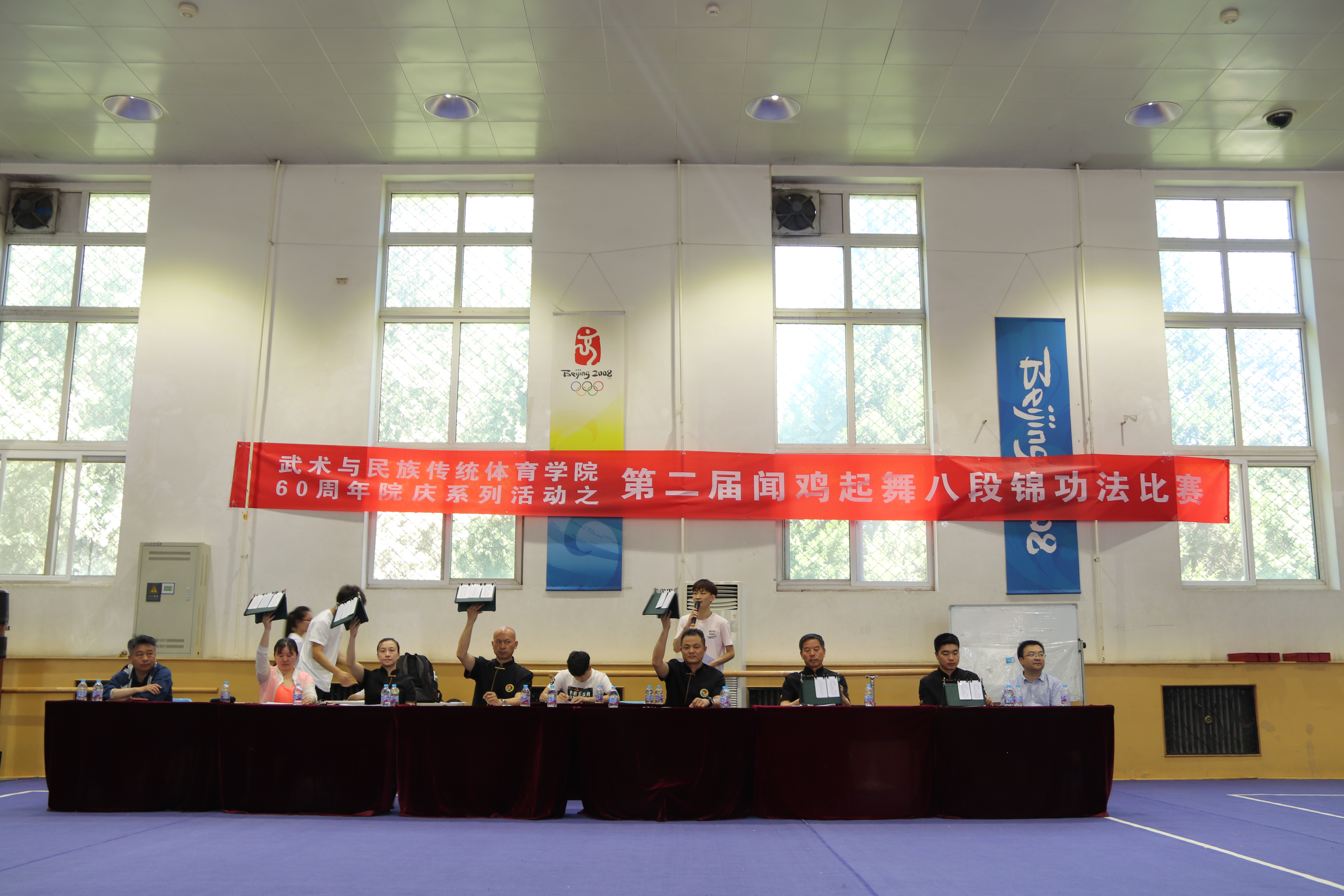 为了丰富同学们的校园生活,给同学们提供一个展现早操习练成果的舞台,使学生能够充分掌握导养生功八段锦功法特点,达到强身健体,增强班级责任感和荣誉感,提高同学们早操的积极性,武术与民族传统体育学院于5月30日10:00在北武术馆举行第二届“闻鸡起舞” 八段锦功法比赛。