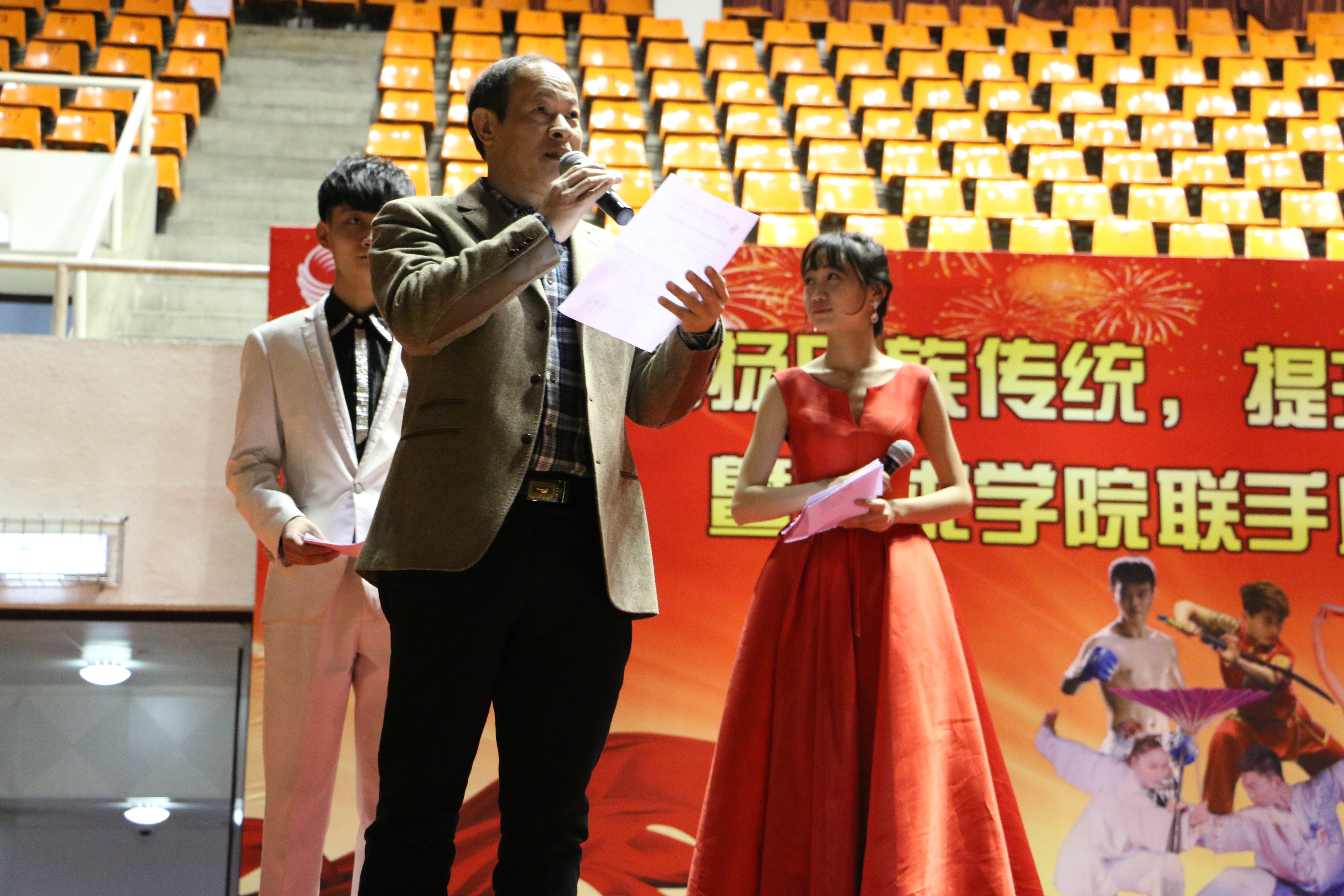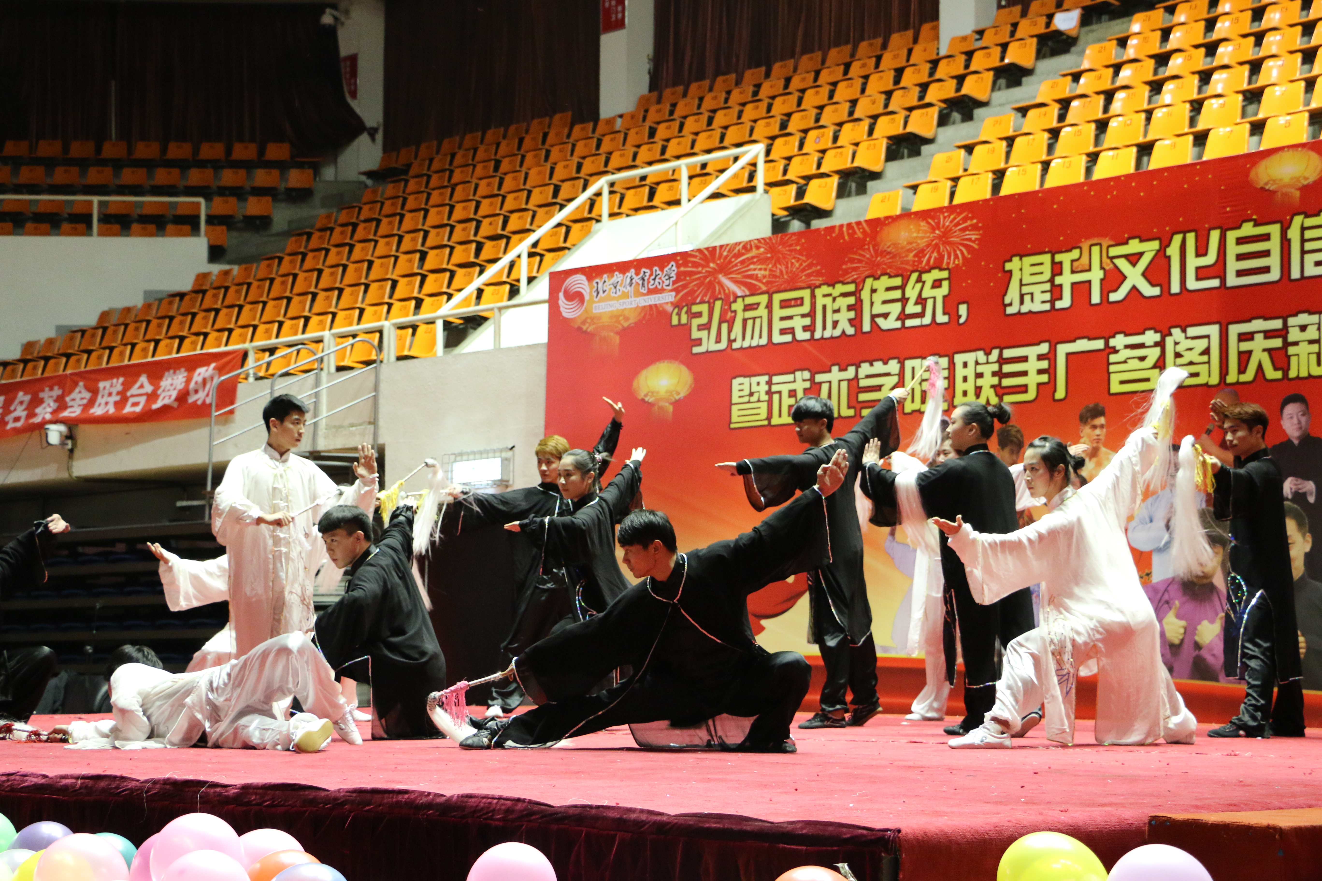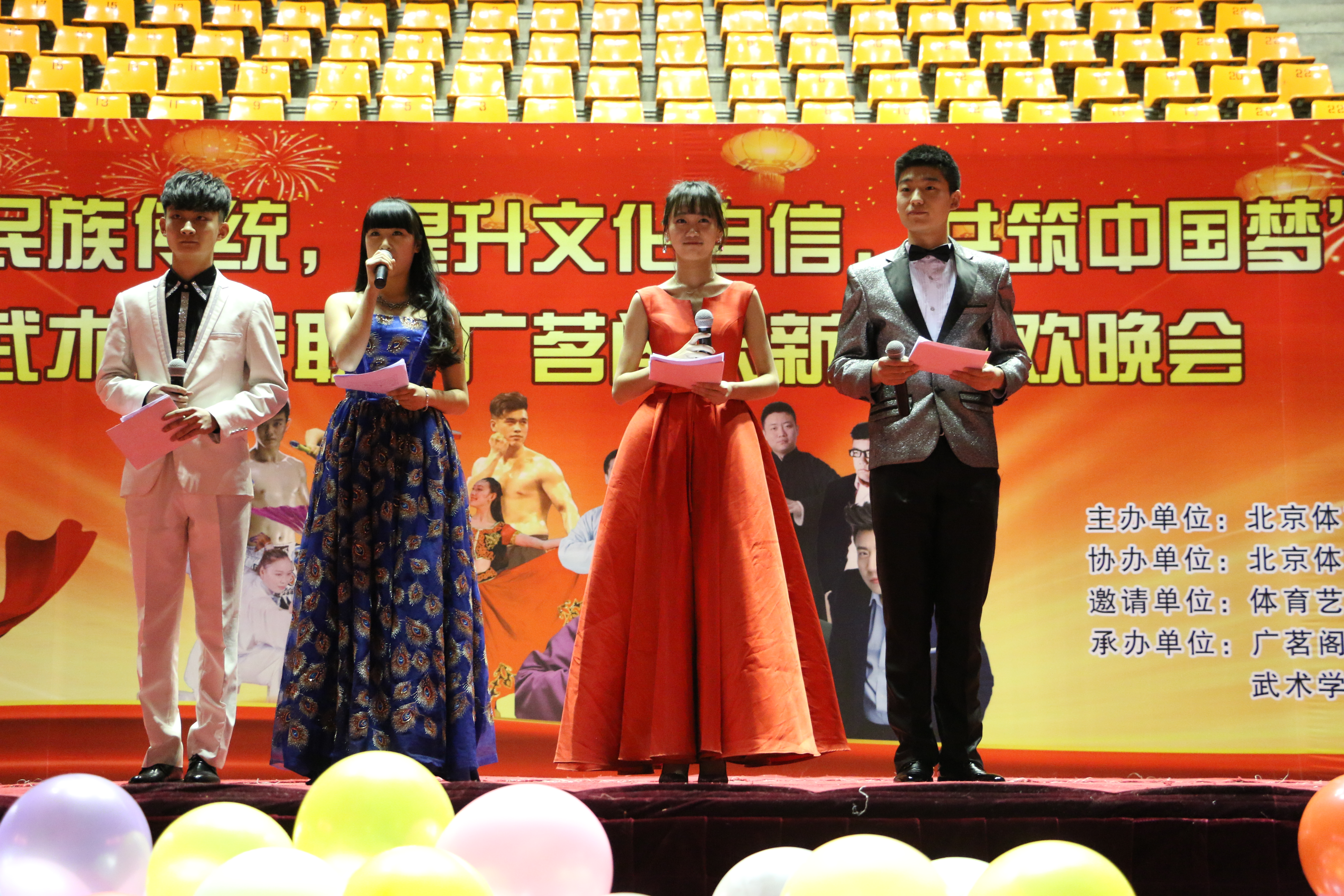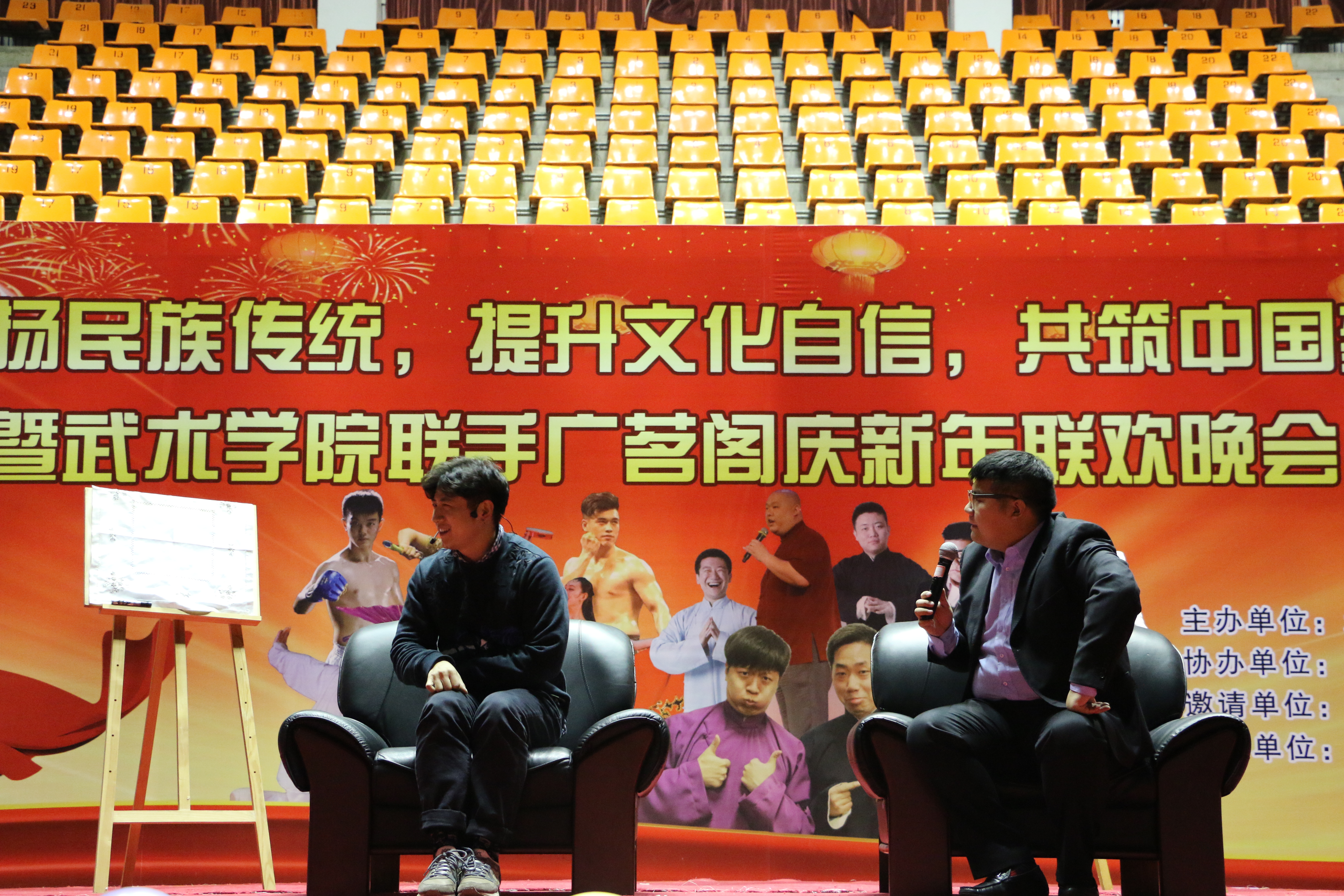 为弘扬中国传统文化,提高同学们的文化素养,增强同学们对传统文化的认识与了解,学院邀请同样具有民族传统文化特色的相声艺术以公益的形式走进校园与武术学院同台演出共迎2016新年。活动由武术学院主办,校团委协办,主题为“弘扬民族传统,提升文化自信,共筑中国梦”。晚会于2016年1月6日19:00在英国上市公司365综合馆隆重举行。英国上市公司365校长池建,英国上市公司365副校长刘大庆,学生工作处处长申健,校团委书记周启迪,成教部副部长林珊,中专副校长岳庆利,学生处副处长张丽丽,武术学院院长张强强,书记许声宏,副院长李士英、马学智以及学院的全体师生和其他院系的老师和学生参加了此次晚会。